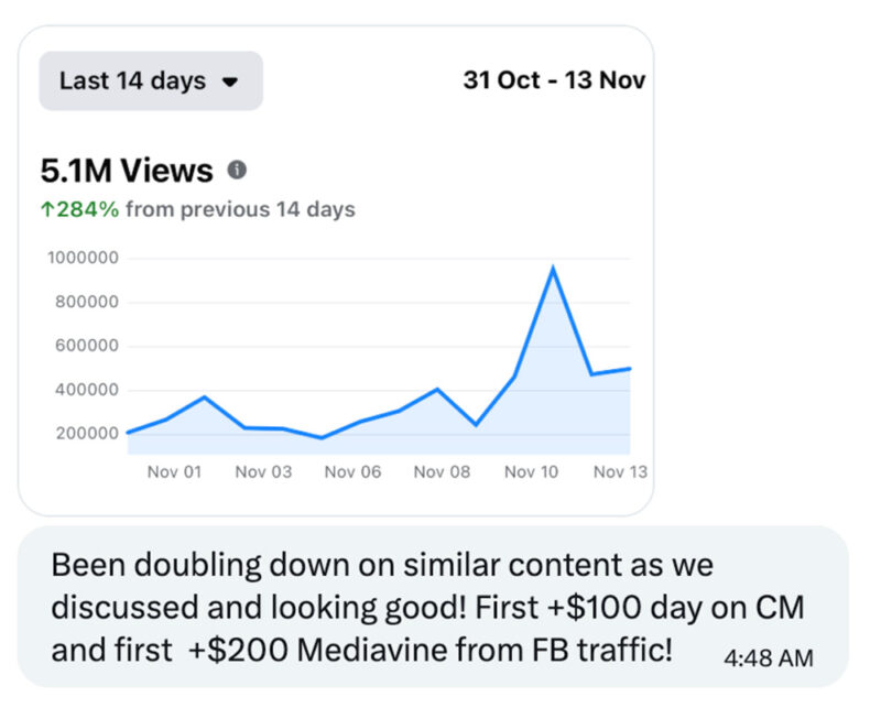 For those of you who want to get up to speed fast with Facebook traffic or revenue generation, I offer a 1-to-1 consultation to help you hit your goals, whether it’s for the Facebook Content Monetization program, driving Facebook traffic to your website, or AI content creation.