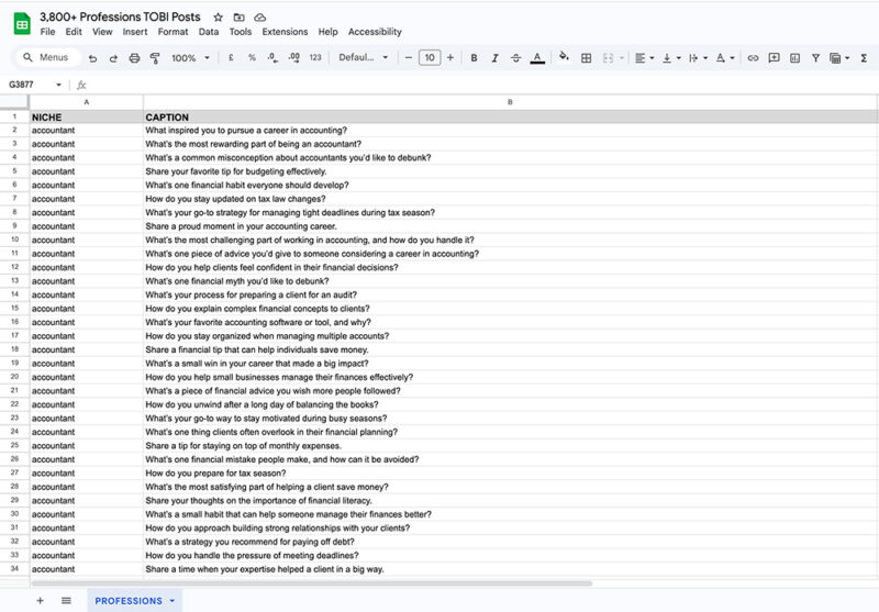 I’ve created over 3,800 professions niche messages you can use for your TOBI posts, or to make into engaging images and reels.